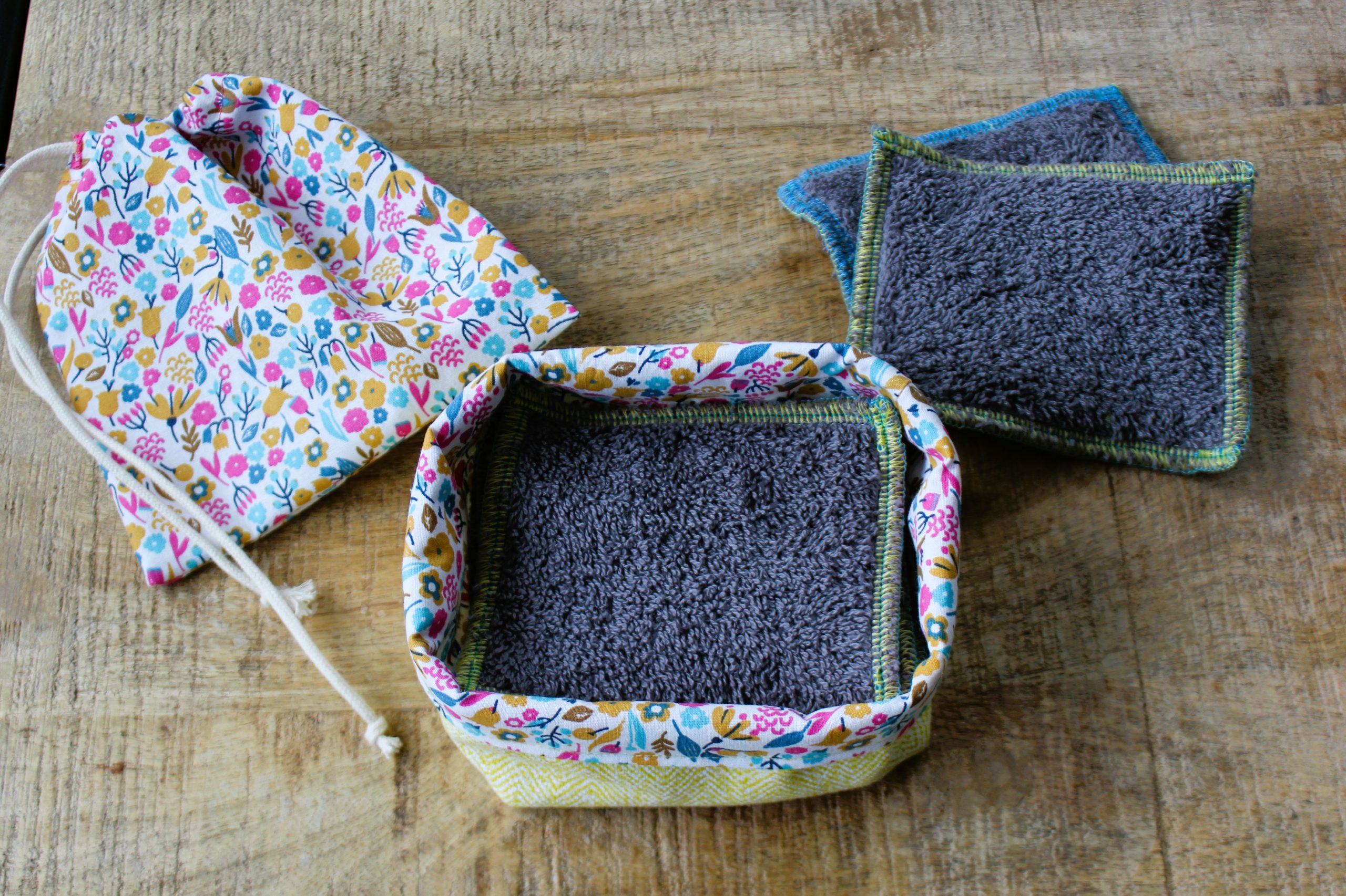 Elles se vendent également en kit avec une corbeille de rangement et un sac pour lavettes sales. La corbeille de rangement facilite leur préhension et le sac permet de stocker les lavettes sales dans l’attente d’une lessive.