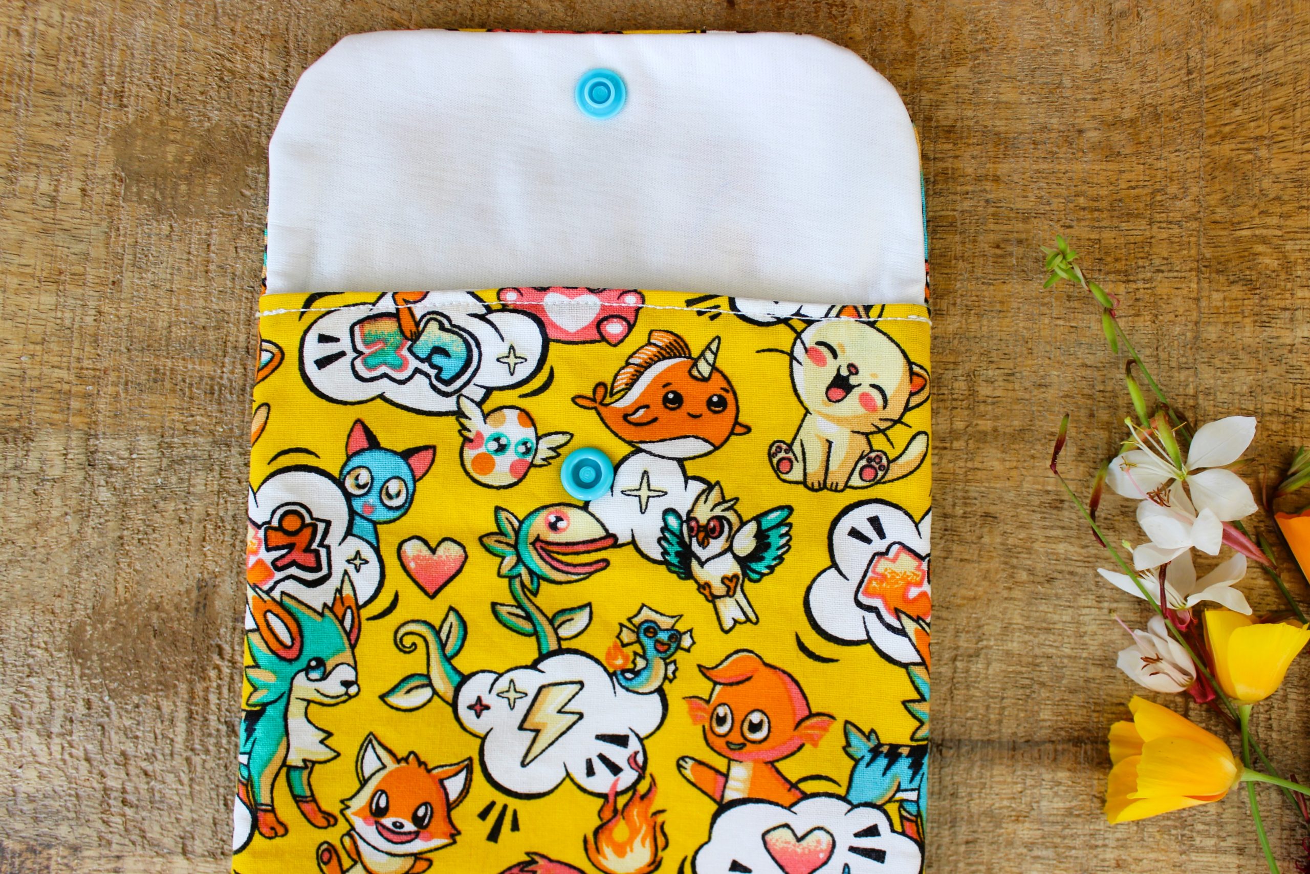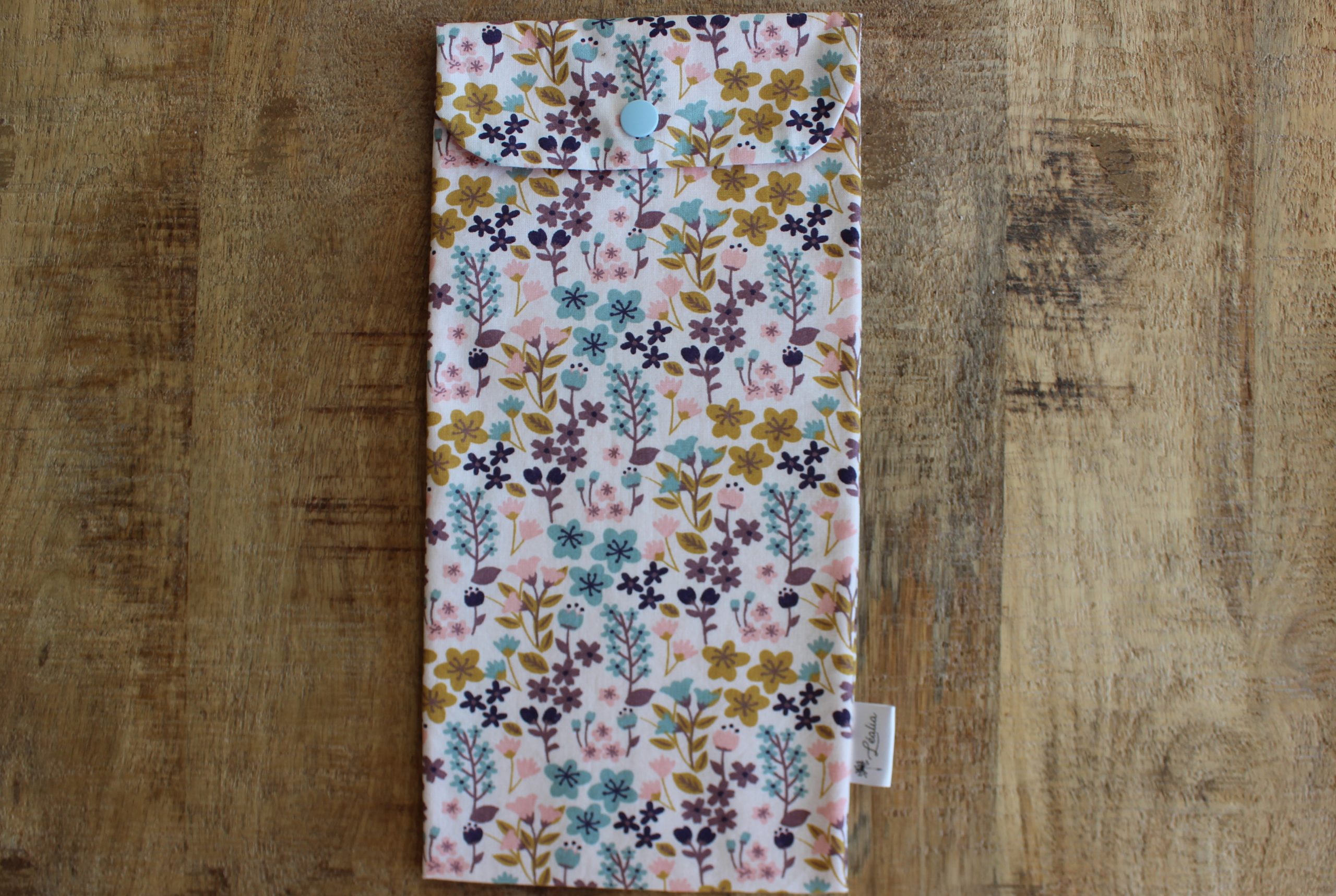 Composition : Extérieur en coton biologique ou oeko-tex ; intérieur en tissu PUL certifié contact alimentaire et pression plastique pour la fermeture.